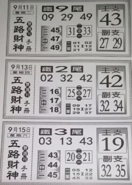 [539報牌] 09/13 中國新聞報、火報、五路財神、玄天上帝 港彩參考用 attach_img
