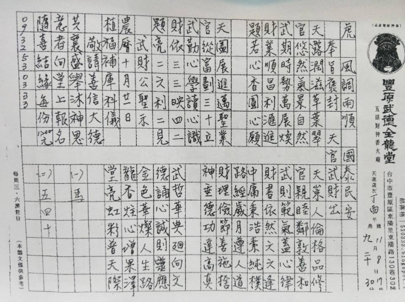 [539報牌] 11/12-16 豐原武德金龍堂-六合彩參考 attach_img