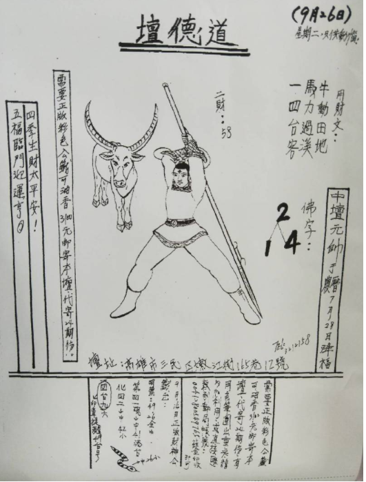 [539報牌] 9/21-26豐原武德金龍堂-六合彩參考