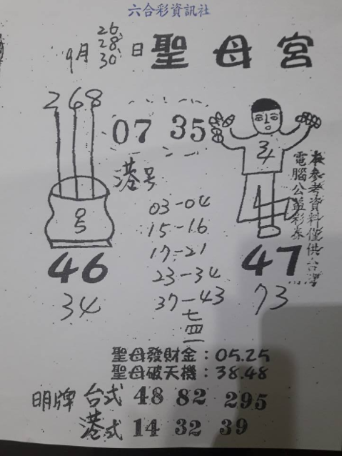 [539報牌] 08/14 三聖宮、濟公活佛第二公籤港彩專用 attach_img