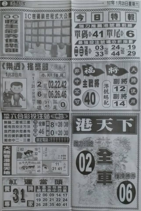 [539報牌] 1/20港天下-六合彩參考 attach_img
